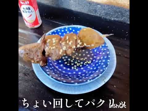 B級グルメ 立ち食い焼鳥やね、目の前でうまそ〜に焼いてる、ズリ、ひね、肝、クルンと回してパクリッ、赤星大瓶ビールをごくリッ、最高ッス