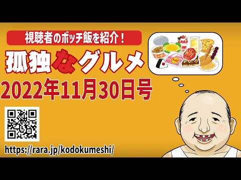視聴者のぼっち飯を紹介!「孤独”な”グルメ」2022年12月27日号 B級グルメ X Facebook はてブ Pocket LINE コピー 2026.02.28 視聴者の皆さまが一人で食べた食事を紹介する人気企画「孤独なグルメ」 B級グルメから豪華グルメ、ズボラ飯から手の込んだ ...
